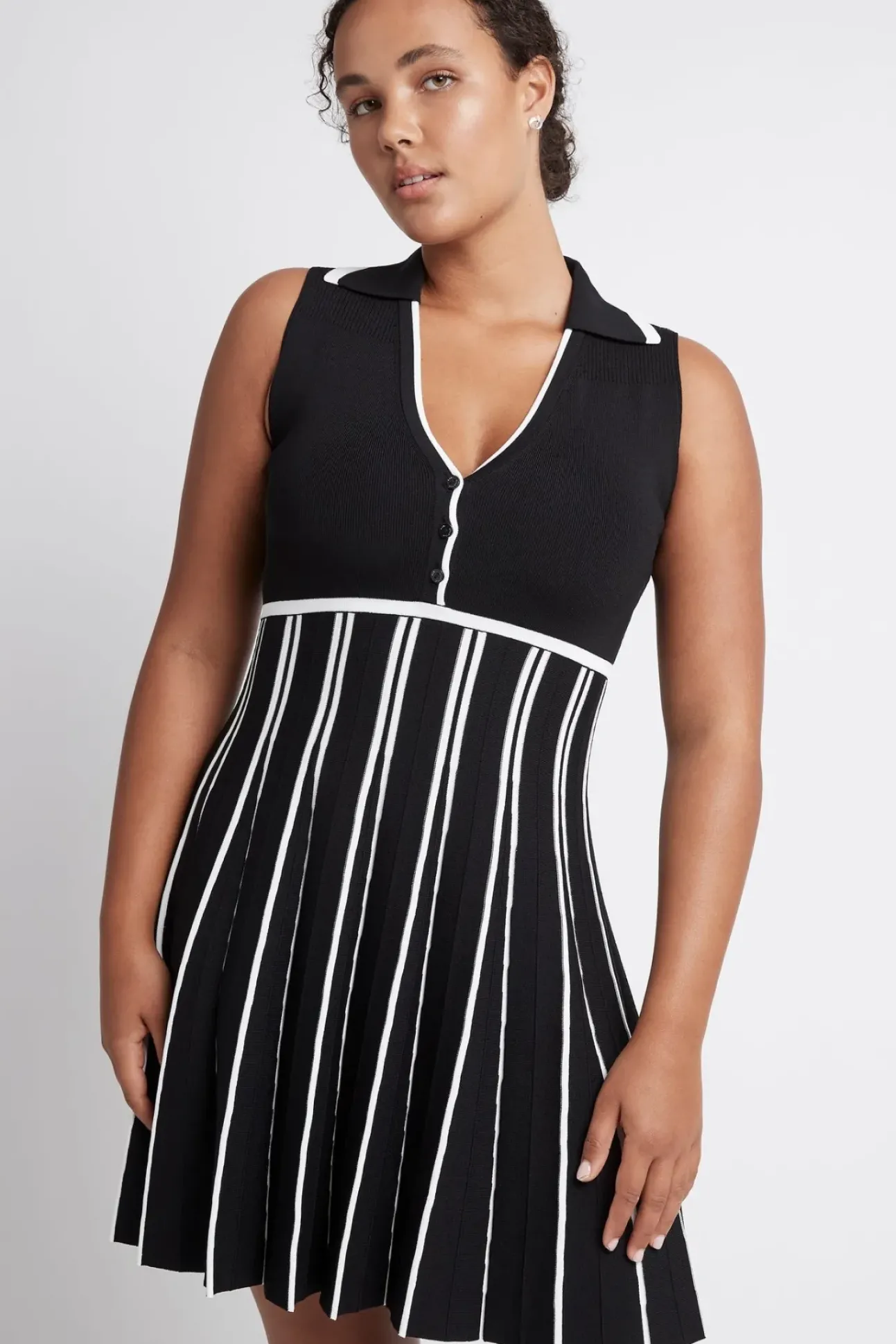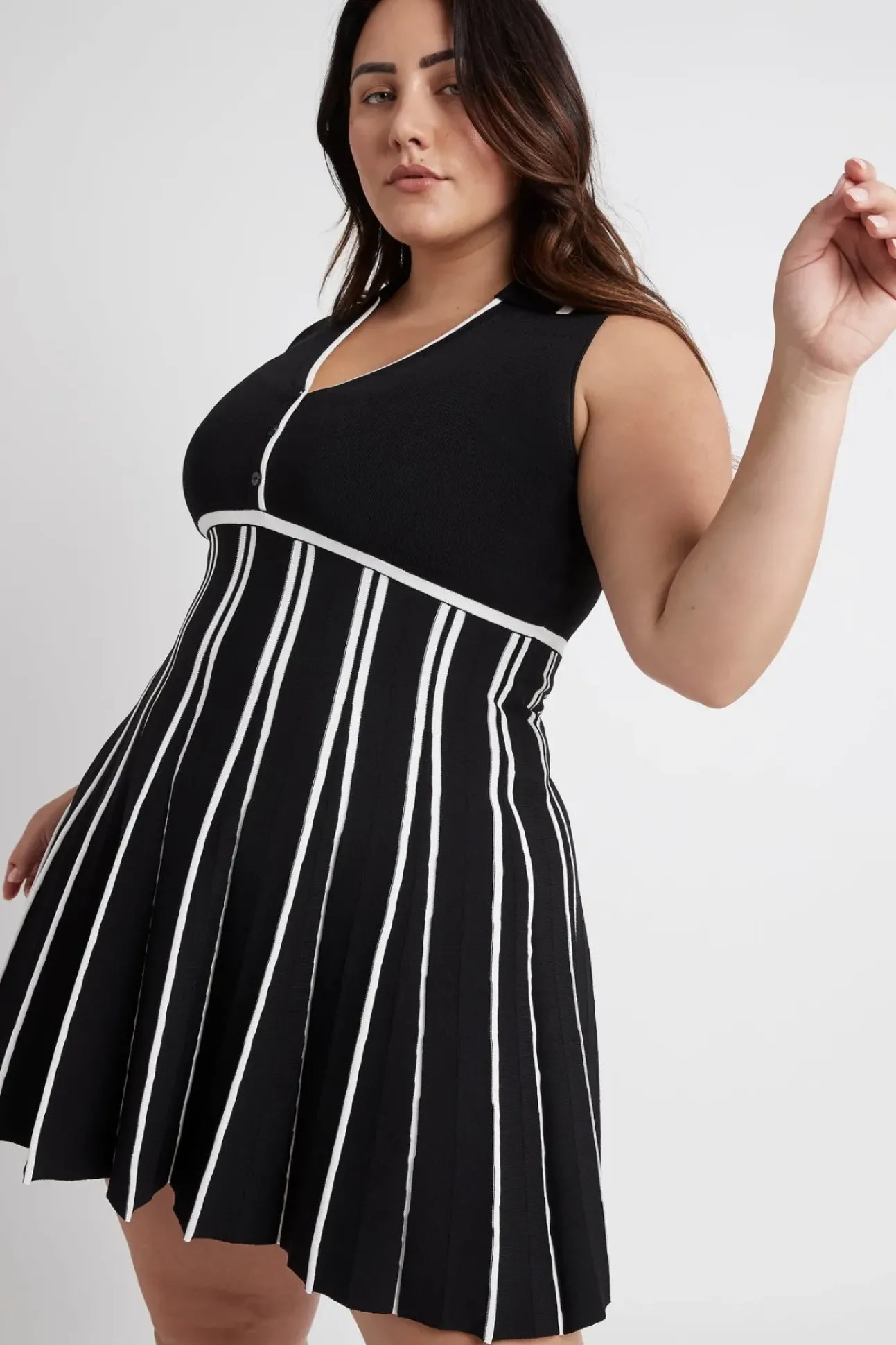 Sleeveless Pleated Knit Mini Dress 801