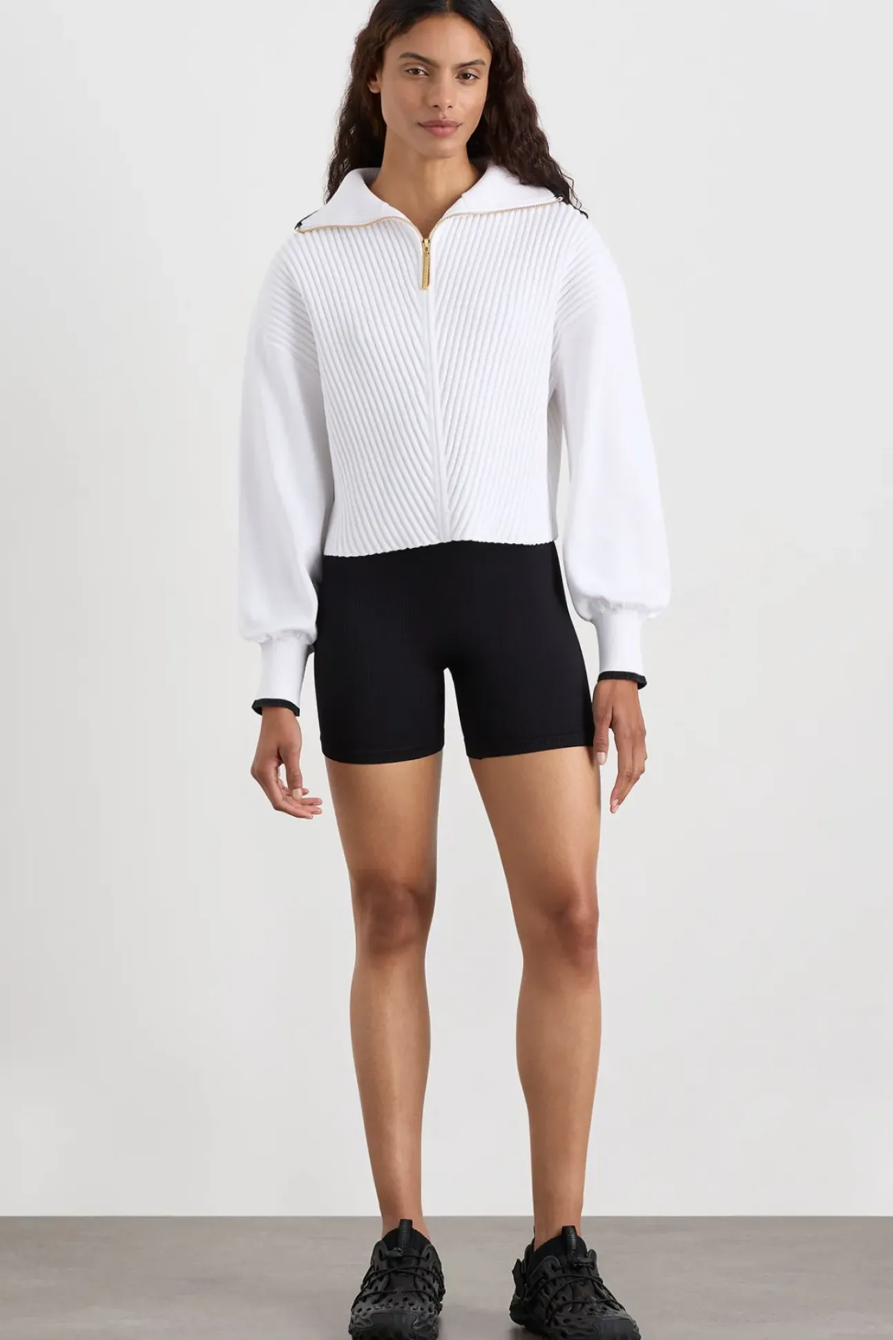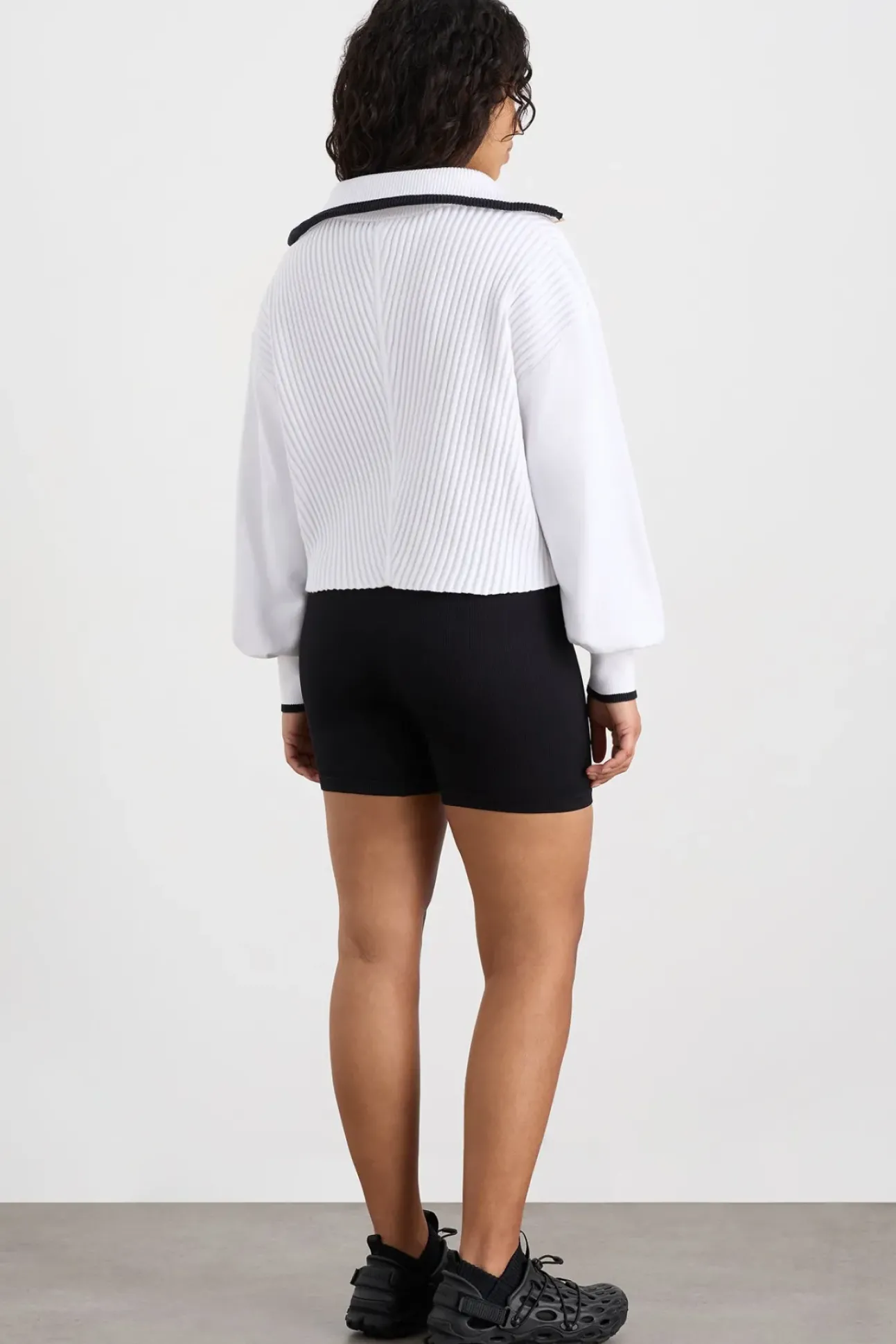 - Curved Sleeves With Contrast Ribbed Cuffs