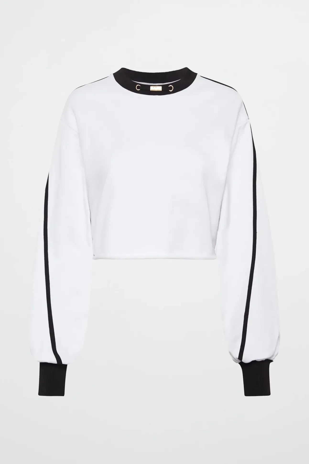 - Ribbed Crew Neckline With Eyelet And Logo Plaque Detail